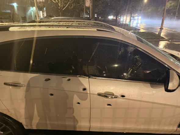 As you can see in the photos, there are over 10 gunshots concentrated on the passenger side—shattering windows and piercing the doors. By all accounts naturally, this should have ended differently.